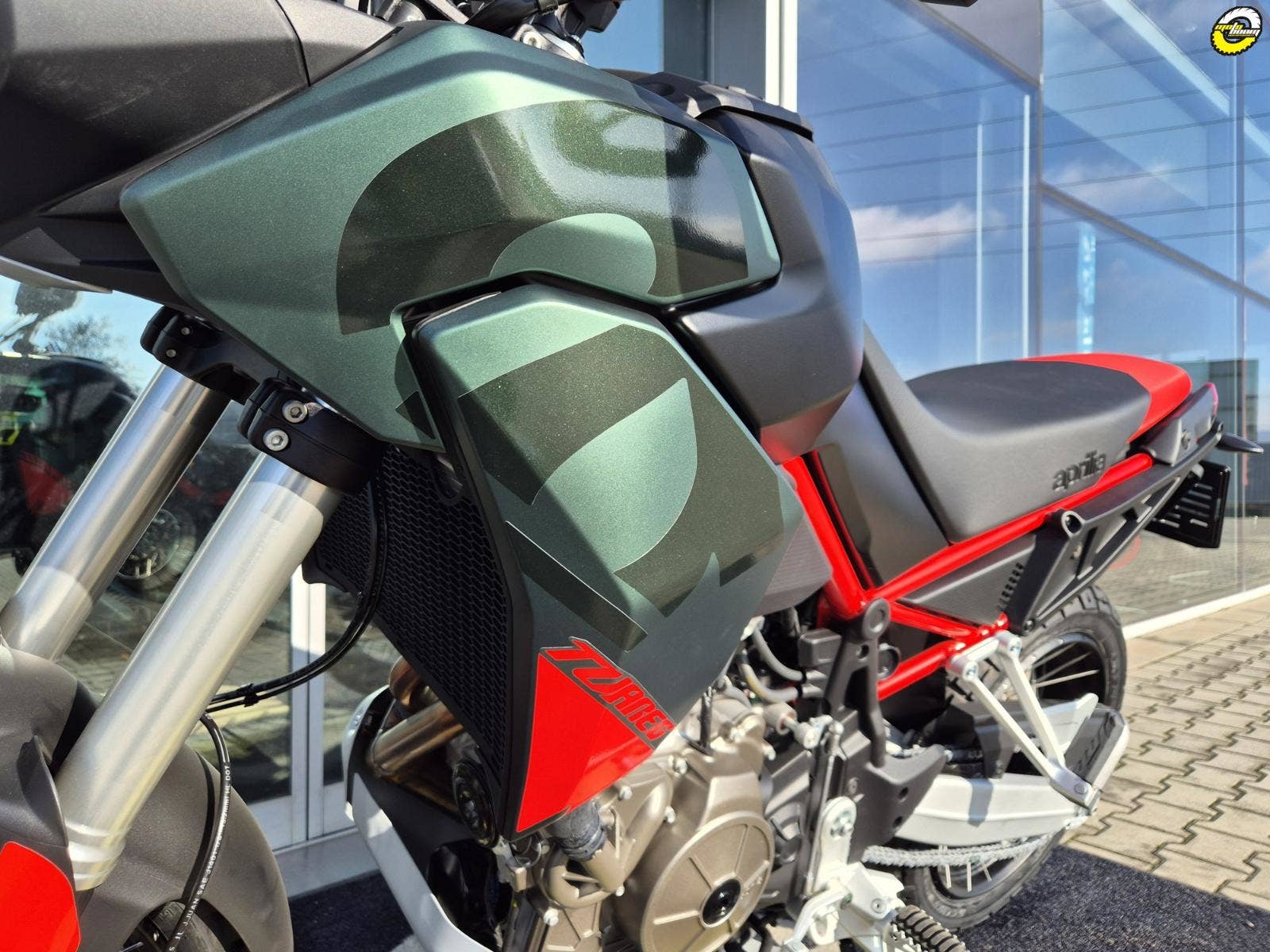 Full LED světlomety a směrovky s unikátním světelným podpisem. Lepený 5" TFT displej. Mapy motoru (AEM), brzdný účinek motoru (AEB), dvoukanálové ABS (3 režimy a ochrana proti nadzvednutí zadního kola), kontrola trakce (ATC), 4 jízdní režimy, tempomat (ACC), brzdové hadice s kovovým opletením.