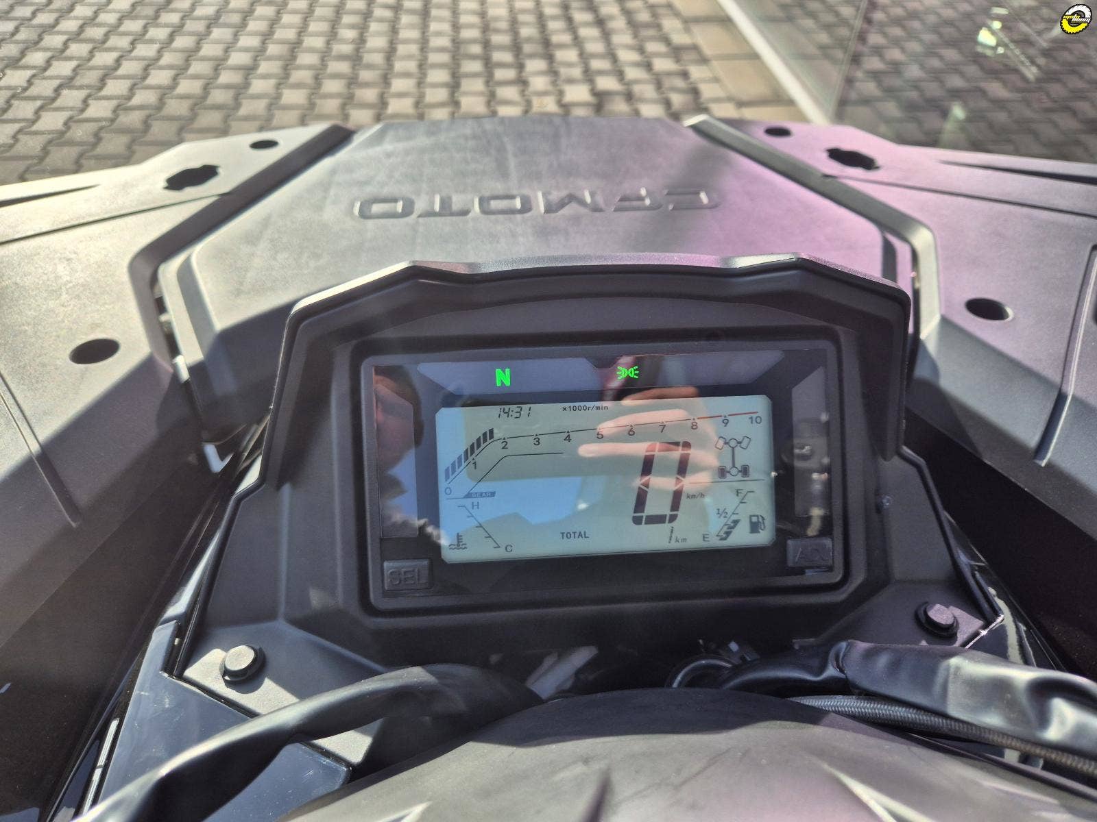 Moderní LCD displej dovoluje připojení a ovládání chytrého telefonu prostřednictvím Bluetooth technologie, zároveň dovoluje váš chytrý telefon ovládat pomocí tlačítek (příjem/ukončení hovoru). Všechny palubní údaje (12 hodnot) jsou mimořádně transparentní.
