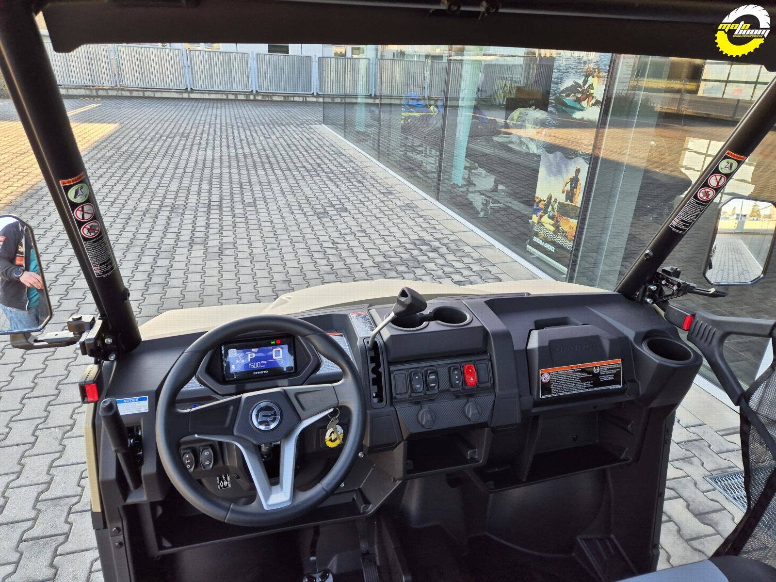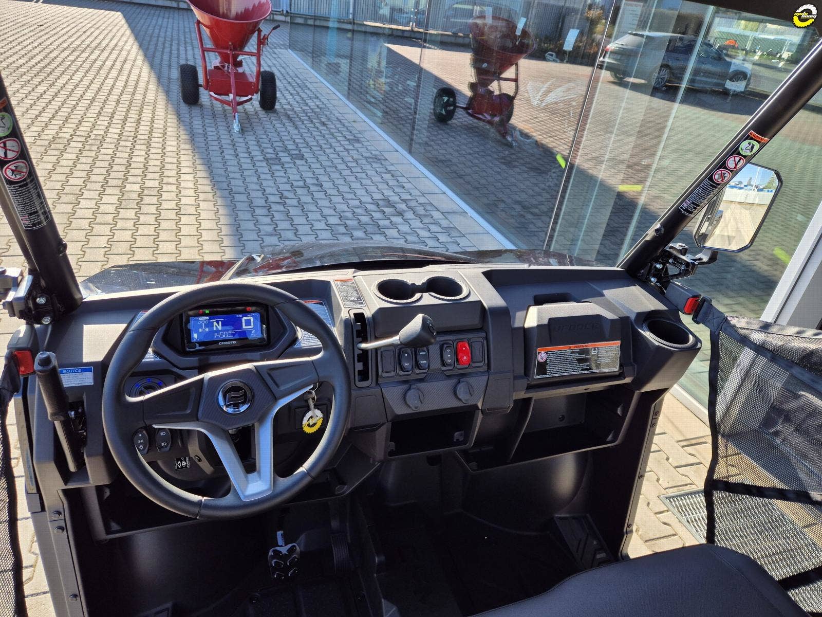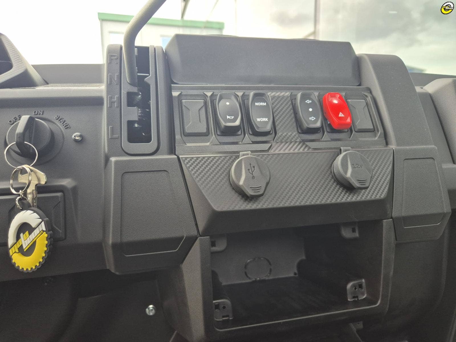 Světlá výška stroje 270 mm naznačuje, že UTV625 je skutečným odborníkem v terénu, přičemž zadní samosvorný diferenciál Eaton doplňuje uzávěrka předního diferenciálu. S touto výbavou a možností plné uzávěrky 4×4 je pro stroj práce zábavou.