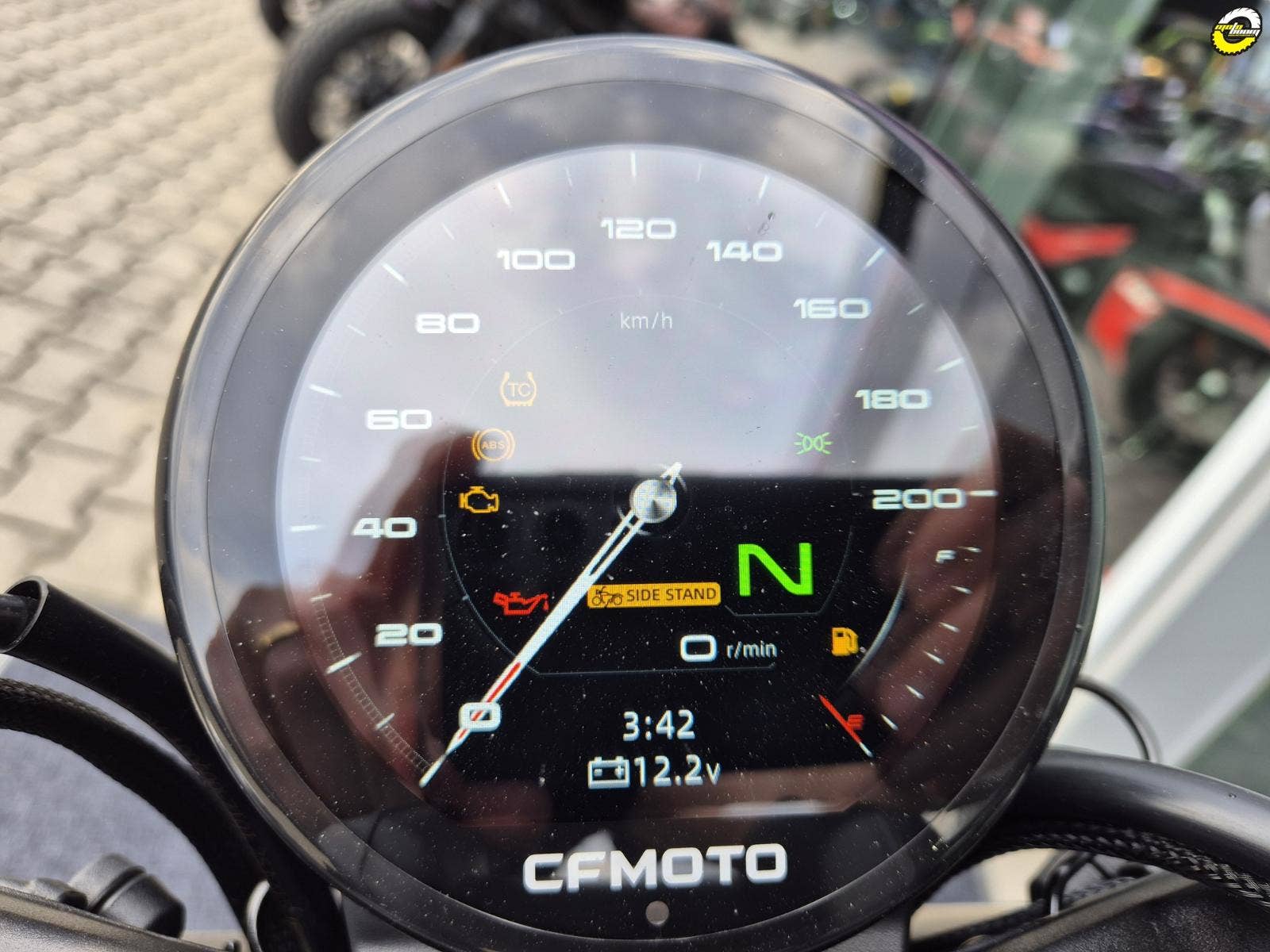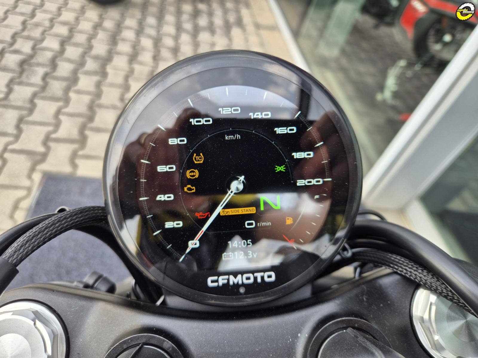 Překvapením může být nastavitelné upozornění na řazení. Při použití komunikační jednotky T-Box a navigace v aplikaci CFMOTO Ride dokáže zobrazovat navigační pokyny.