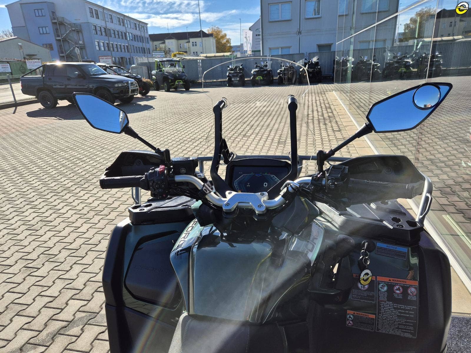 Posilovač řízení, naviják, plexi štít, zadní box, ochrana podvozku, přední LED světlo, vyhřívané gripy + palec plynu, vyhřívané sedadlo řidiče, přední a zadní rám, přední a zadní ohrádka na nosiči