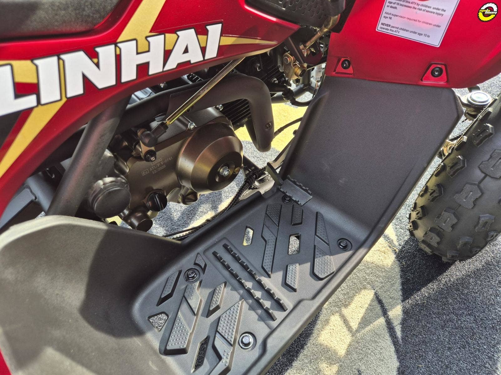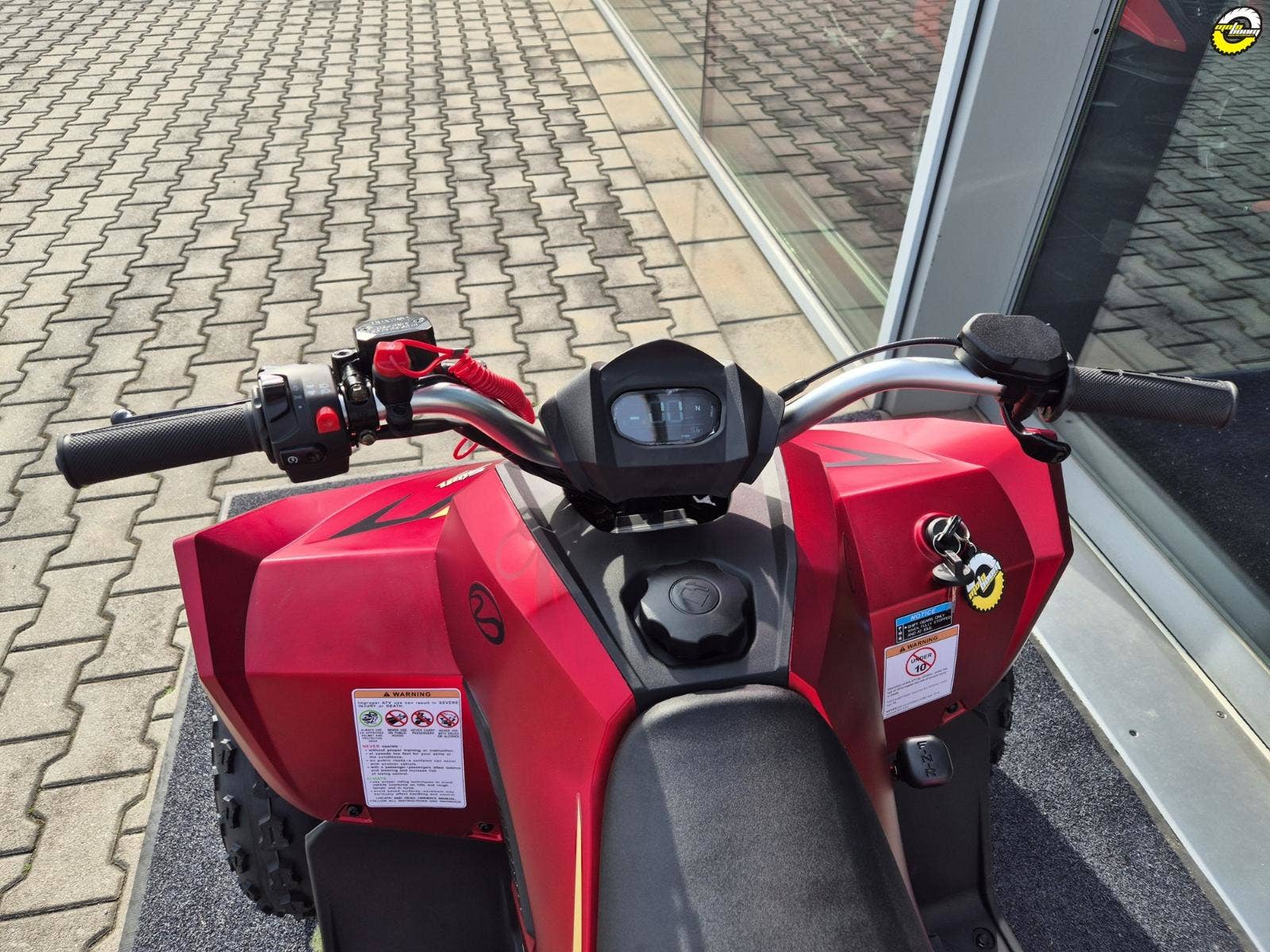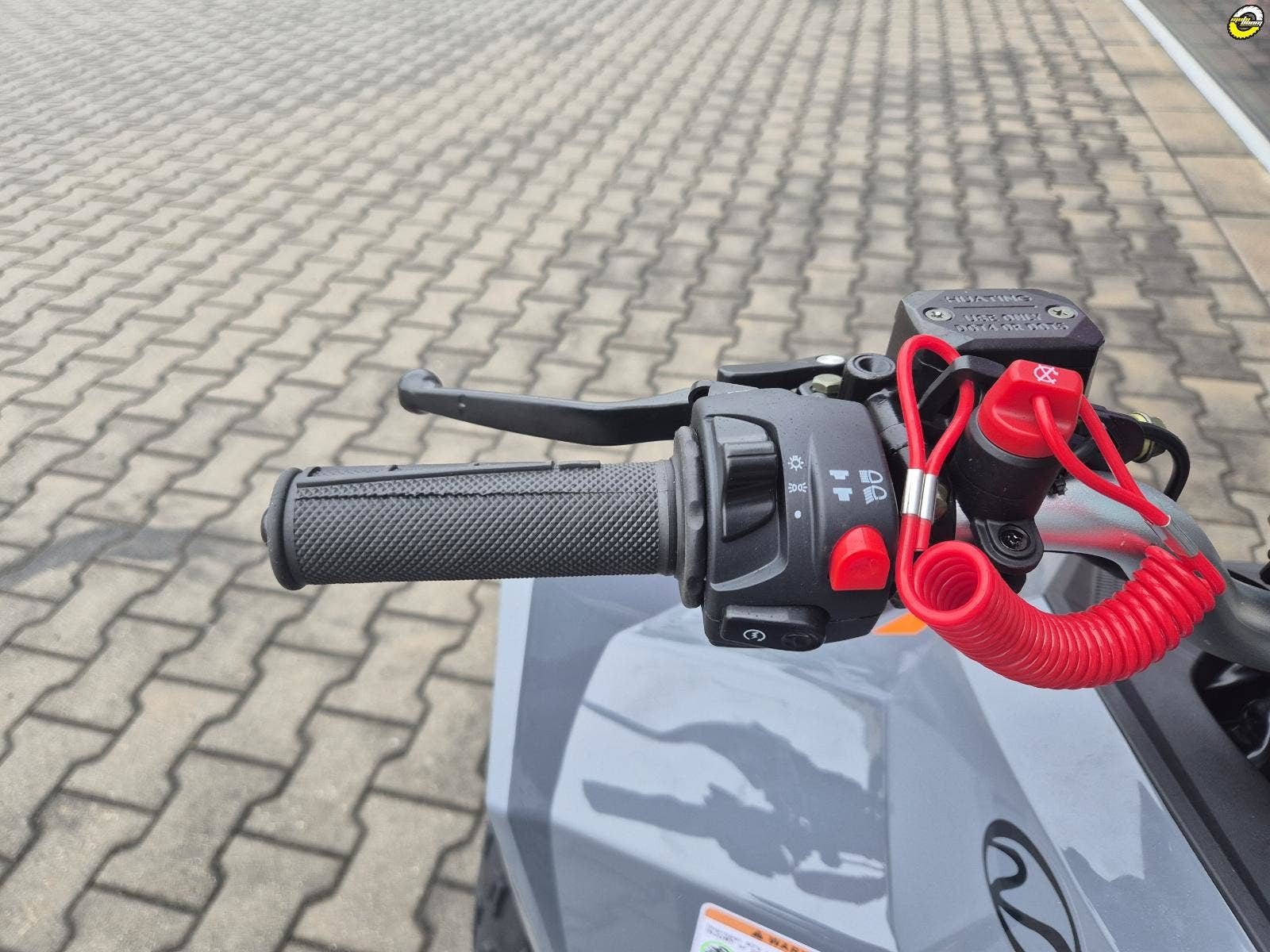 Čtyřkolka je vybavena magnetickým systémem, který okamžitě vypne motor, pokud jezdec opustí své místo. Díky tomu je riziko úrazu při pádu minimalizováno.