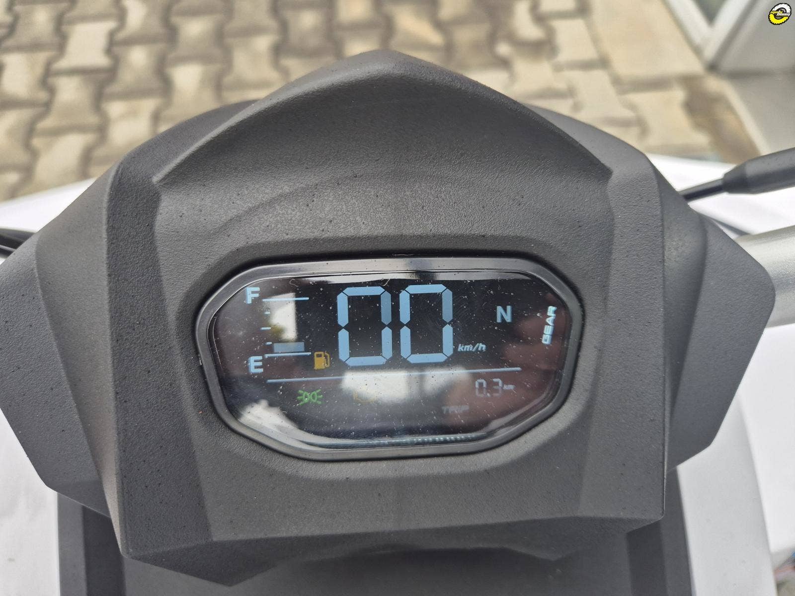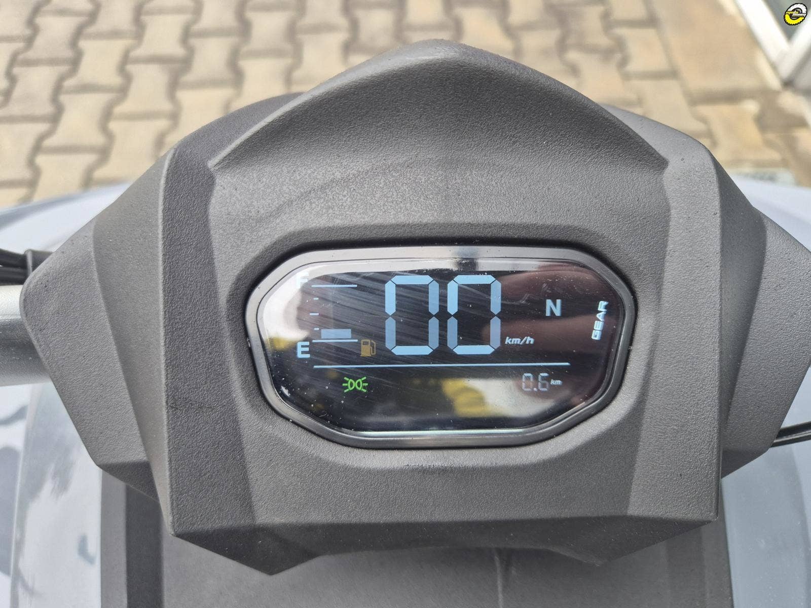 Přehledný design přístrojového panelu zobrazuje základní informace, jako je rychloměr, počet ujetých kilometrů, polohu řadící páky (vpřed, vzad, neutrální) a nechybí ani kontrolka motoru.