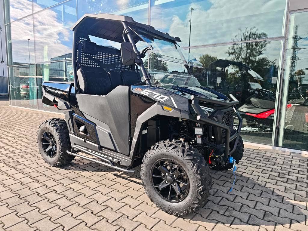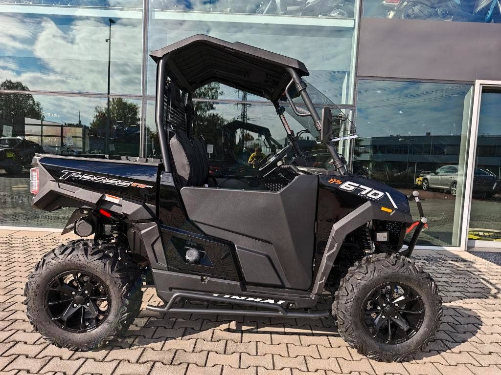 T-Boss 670 EPS je nejnovější generace pracovního UTV s moderním robustním designem a vysokou užitnou hodnotou. Kombinuje spolehlivý výkon s úsporným provozem a je připraven na nasazení v zemědělství, lesnictví, stavebnictví i komunálních službách. Elektrický posilovač řízení EPS zajišťuje pohodlné ovládání v každé situaci a silný motor poskytuje dostatek síly pro tahání přívěsů i práci s těžkým příslušenstvím. O bezpečí a komfort posádky se starají odolné poloviční dveře a prostorný interiér.