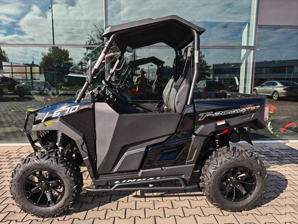 Linhai T-Boss 670 EPS nabízí již v základu výbavu, která bývá jinde za příplatek. Patří sem elektrický naviják 3000 lbs s dálkovým ovládáním, plastové dveře, UV-odolná střecha, čelní plexi s možností otevření, nastavitelný volant, LED světlomety s DRL, pevný přední nárazník, boční ochrany Rock sliders, třípásmová lavice s pásy, hlavové opěrky, madla pro spolujezdce, trojice zpětných zrcátek, úložný box v palubní desce, držáky na nápoje i homologované tažné zařízení.
