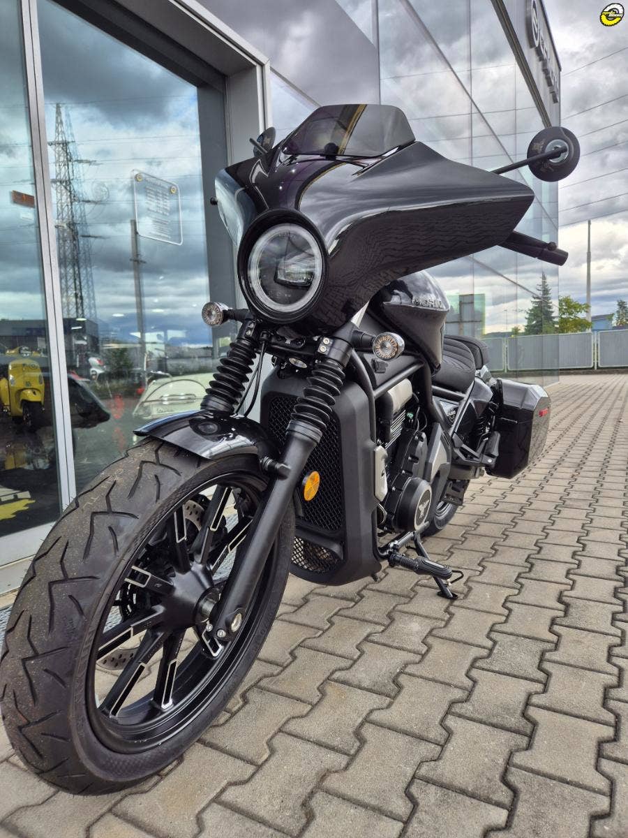 Calibro Bagger je model určený pro ty, kteří hledají nezaměnitelný a působivý styl. Cruiser s pevnými bočními kufry o objemu 19 l a přední maskou ve tvaru netopýřích křídel v základní výbavě.