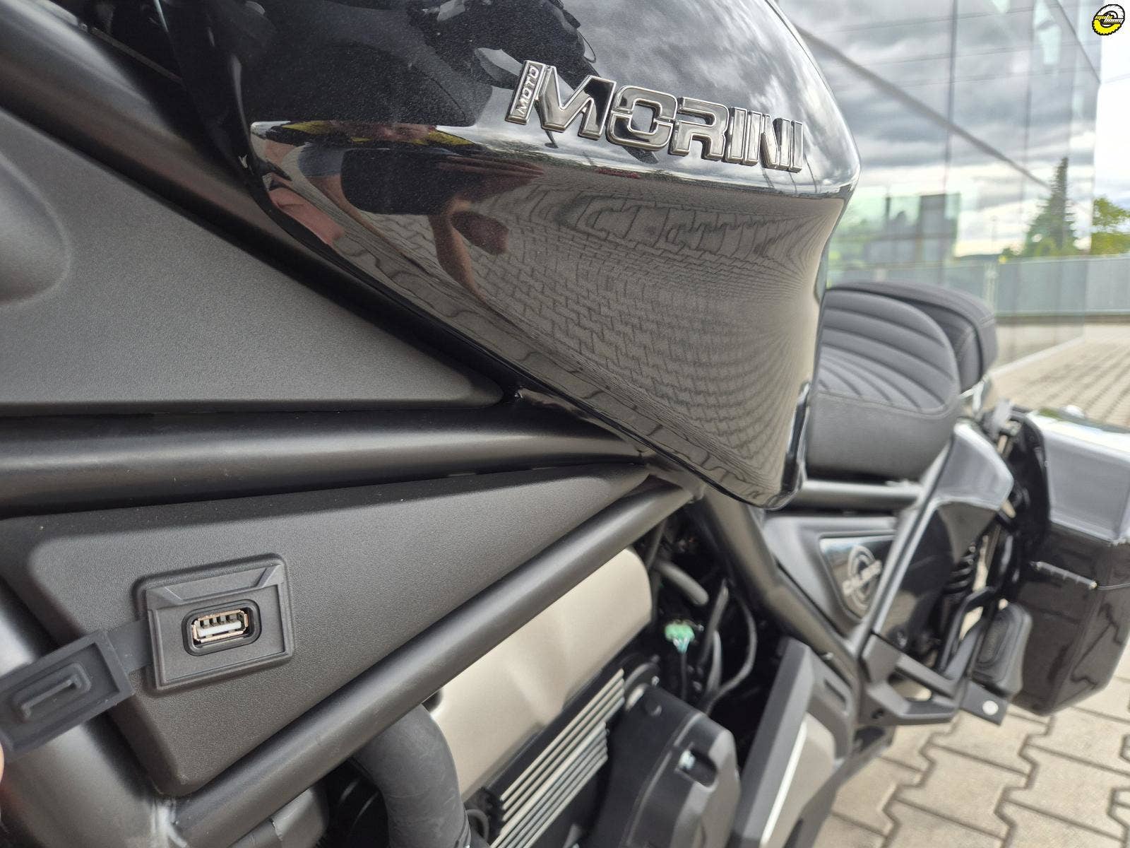 USB nabíječka, která se nachází na levé straně motorky, umožňuje nabíjet vaše zařízení během jízdy.