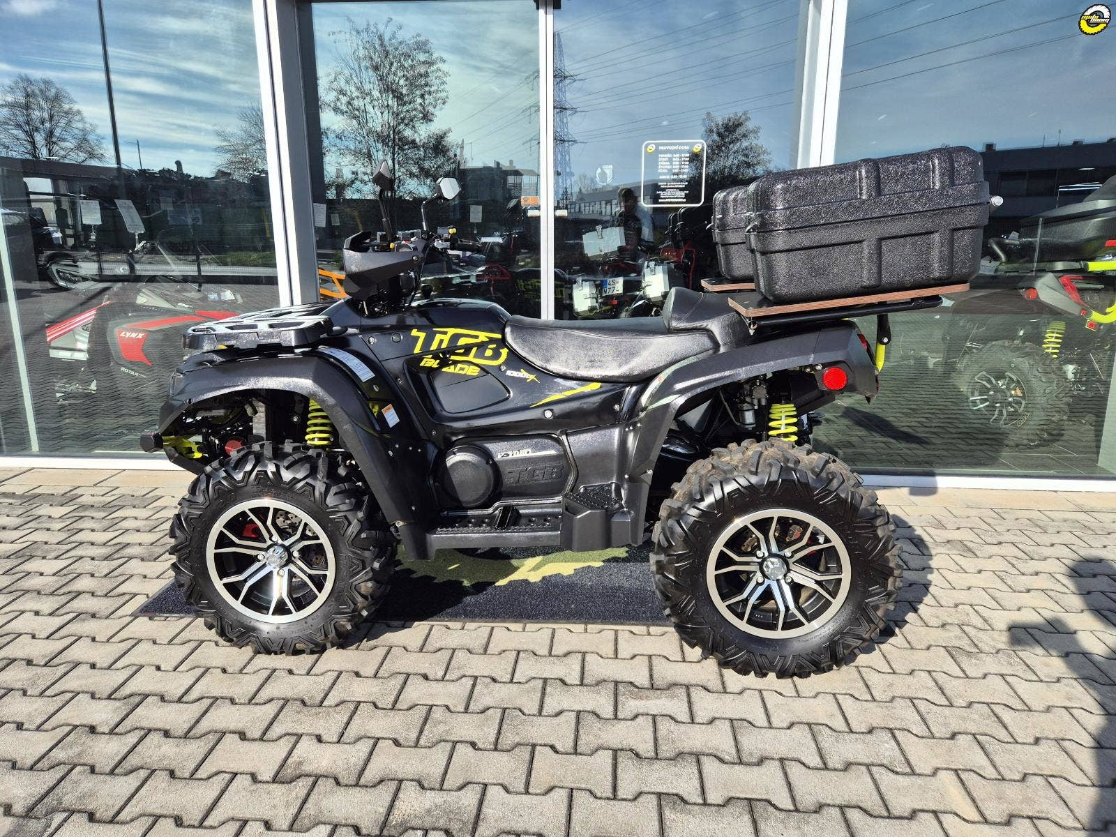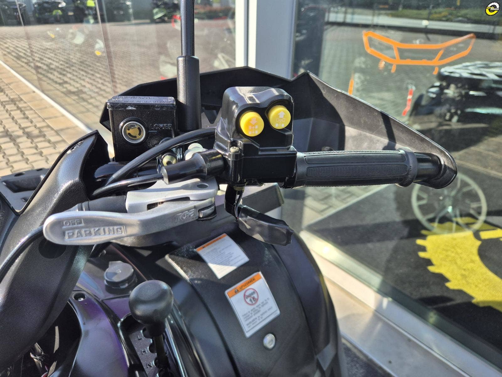 Na čtyřkolce namontován zadní BOX TGB, vyhřívané gripy + páčka plynu a sedadlo.