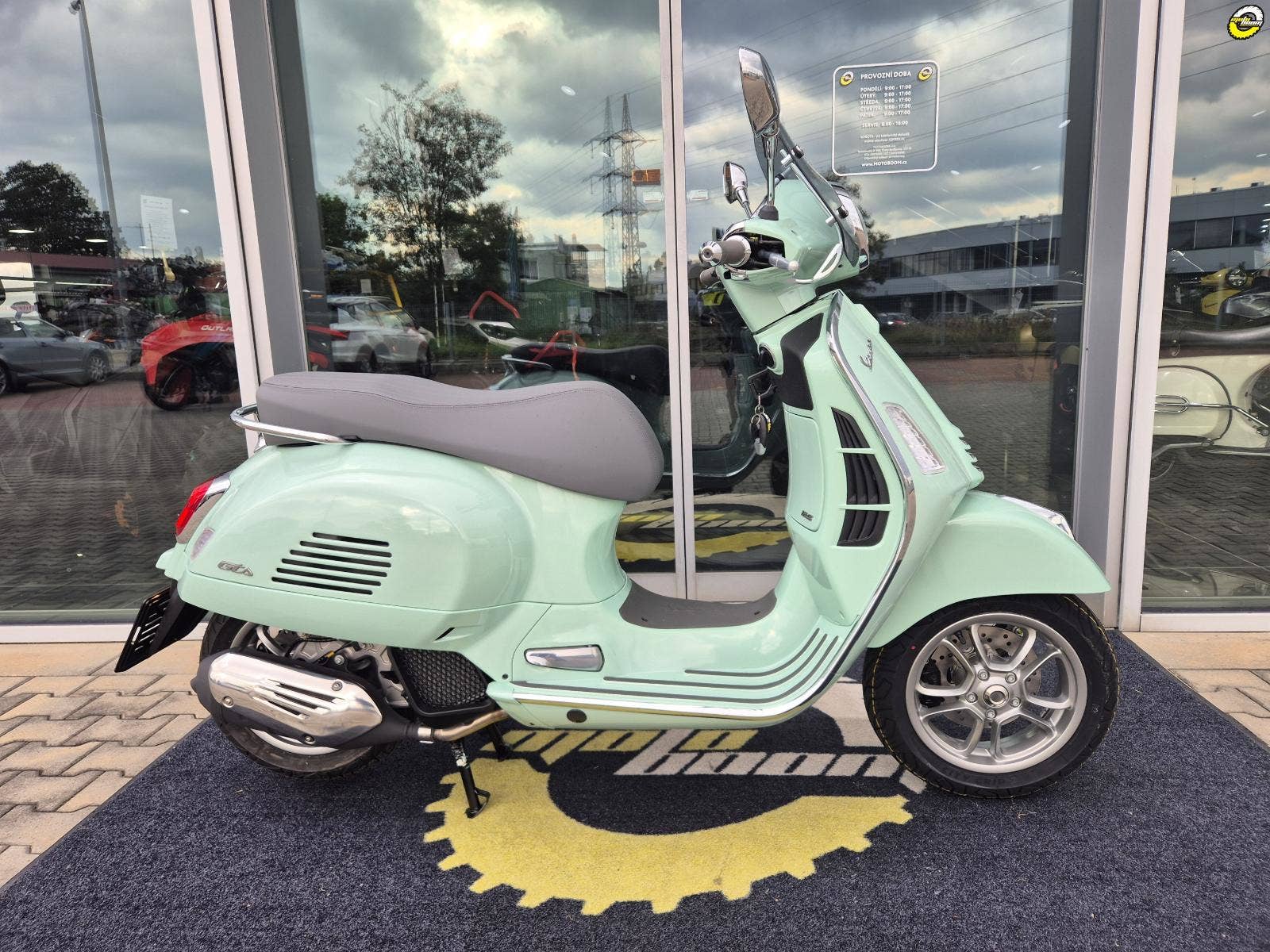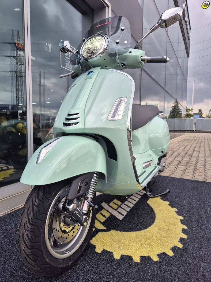 Vespa Gts je vybavena inovativními funkcemi, které z ní činí jeden z nejpokročilejších modelů Vespa vůbec. K dispozici je například Bike Finder, dálkové otevírání sedadla, bezklíčové zapalování a praktická zásuvka USB v prostoru vnitřního štítu nohou. Kromě toho je také vybavena 3palcovým analogovým LCD panelem, který si můžeš přizpůsobit pomocí aplikace Vespa MIA, která propojuje Vespu s tvým chytrým telefonem, takže můžeš přijímat hovory pomocí tlačítek na řídítkách, přehrávat hudbu a používat hlasové příkazy k telefonování.