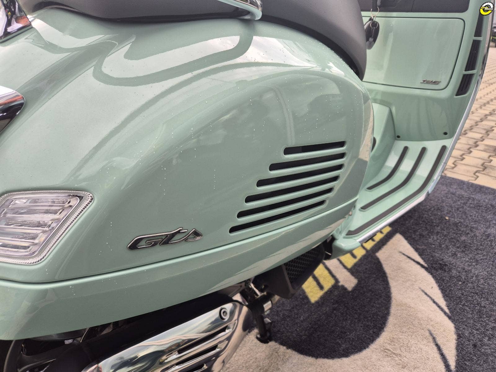 Maximální pozornost byla věnována i těm nejmenším detailům modelu Vespa Gts. Metalické barvy mají lesklou povrchovou úpravu, sedadla a interiér spolu ladí, chromované prvky dodávají další nádech elegance a slavná „kravata“ samozřejmě i nadále přispívá ke statusu Vespy jako nadčasové ikony.