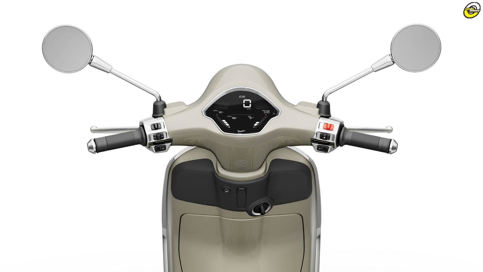 Barevný LCD přístrojový panel s uspořádáním informací navrženým tak, aby byla zajištěna maximální čitelnost za všech podmínek. USB port v přihrádce na předním štítu a systém Bike Finder zvyšují praktičnost při každodenním používání. A s Vespa MIA (volitelné příslušenství) se zážitek posune ještě dál, když propojí tvůj smartphone se skútrem plynule, inteligentně a intuitivně.