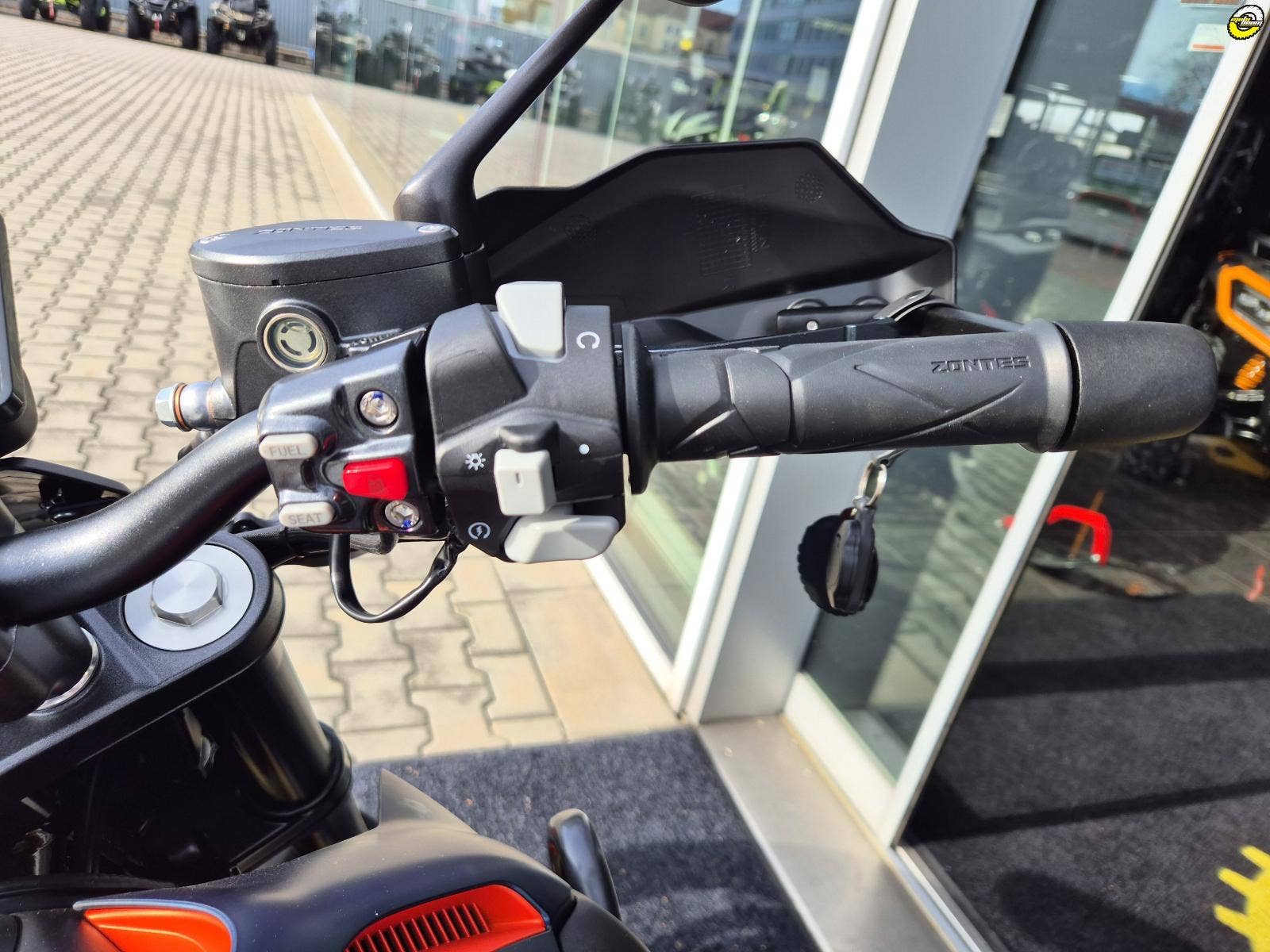 Zontes U1 Hyper trail je dravá motorka s moderním vzhledem se dvěma režimy jízdy - ECO a SPORT. Startování a zabezpečení motocyklu plně elektronicky bez použití klíčku, s transpondérem s dosahem 1,5 metru. Do výbavy patří také velkokapacitní baterie, která poskytuje dostatečnou záruku pro startování v chladném počasí a využívání doplňků, jako je třeba USB nabíječka. Ta má dva USB porty a může dodávat vysoký proud 2,1 A pro nabíjení dvou zařízení USB současně. Samozřejmostí je kompletní LED osvětlení pro bezpečnou a přehlednou jízdu. LCD displej vám poskytne stručný a jednoduchý přehled o všech údajích. Díky válci motoru vyrobenému z čistého hliníku je vnitřní stěna válce tenká, takže teplo z válce je rychle odváděno pryč. Což přispívá k vyššímu výkonu. Galvanizovaná olejová nádrž zase zabraňuje ucpávání filtru oleje v důsledku rzi. Systém BOSCH ABS 9.1M umožňuje řidiči ovládat motocykl bez ohledu na to, jestli jedete v písku, dešti nebo sněhu. Systém ABS vám přinese jistotu. Zadní centrální tlumič využívá vestavěný zásobník naplněný vysokotlakým dusíkem ke snížení teploty hydraulického oleje při tlumení. Sedlo jezdce a spolujezdce je rozdělené ve sportovním stylu a jeho pohodlná výplň a potah zaručují příjemnější jízdu. Hliníková zadní kyvná vidlice díky kombinaci materiálů a speciálnímu procesu odlévání má nízkou hmotnost a dobrou tuhost. Do základní výbavy patří i padací ochranné rámy, které poskytnou ochranu jak motocyklu, tak jezdci. Stejně tak chrániče páček s blastery. K dispozici v modré, oranžové a žluté barvě s drátěnými nebo litými koly.